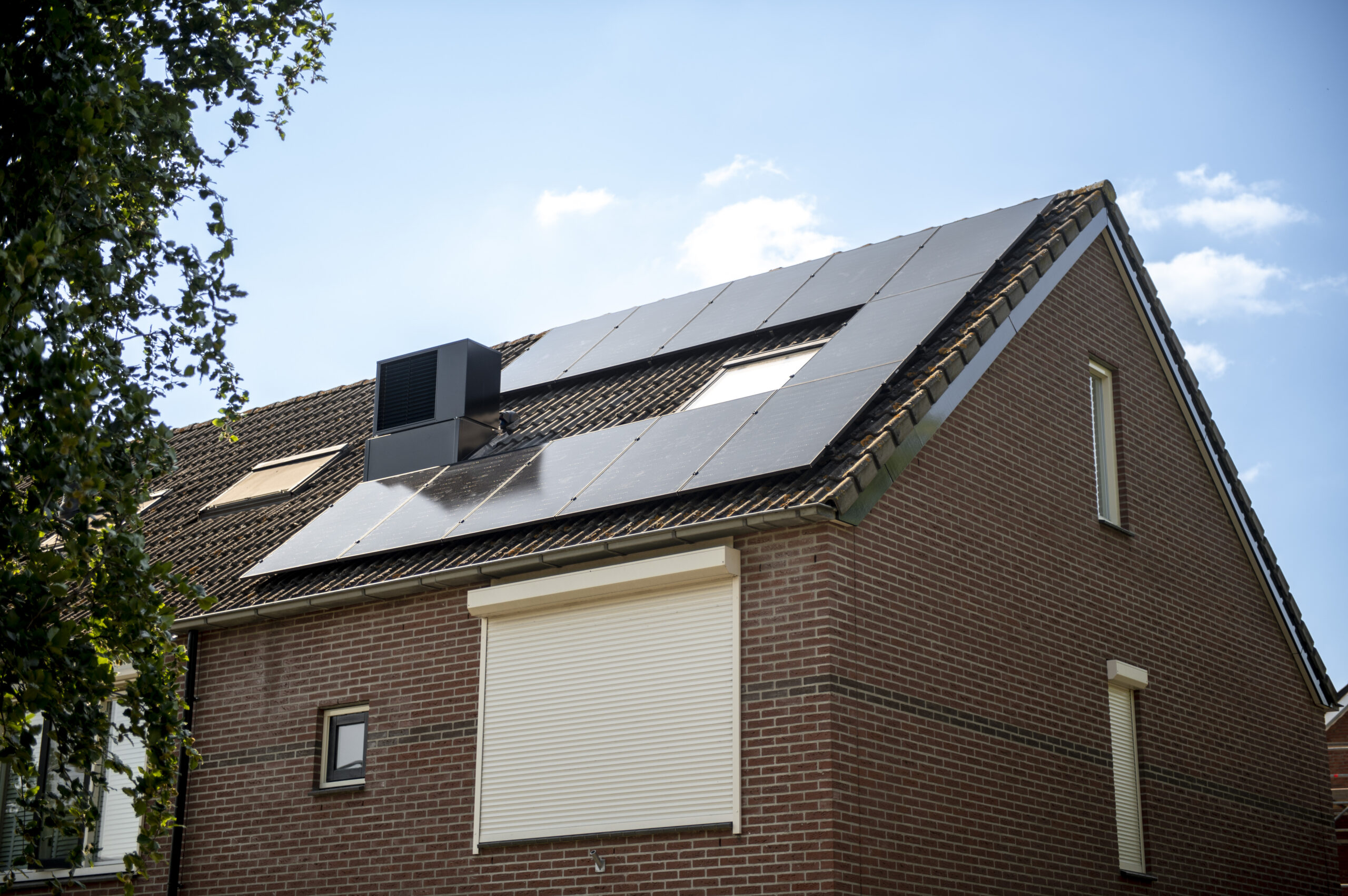Bij deze woning hebben wij een Acond hoogtemperatuur propaanwarmtepomp 9KW op het schuine dak gemonteerd.